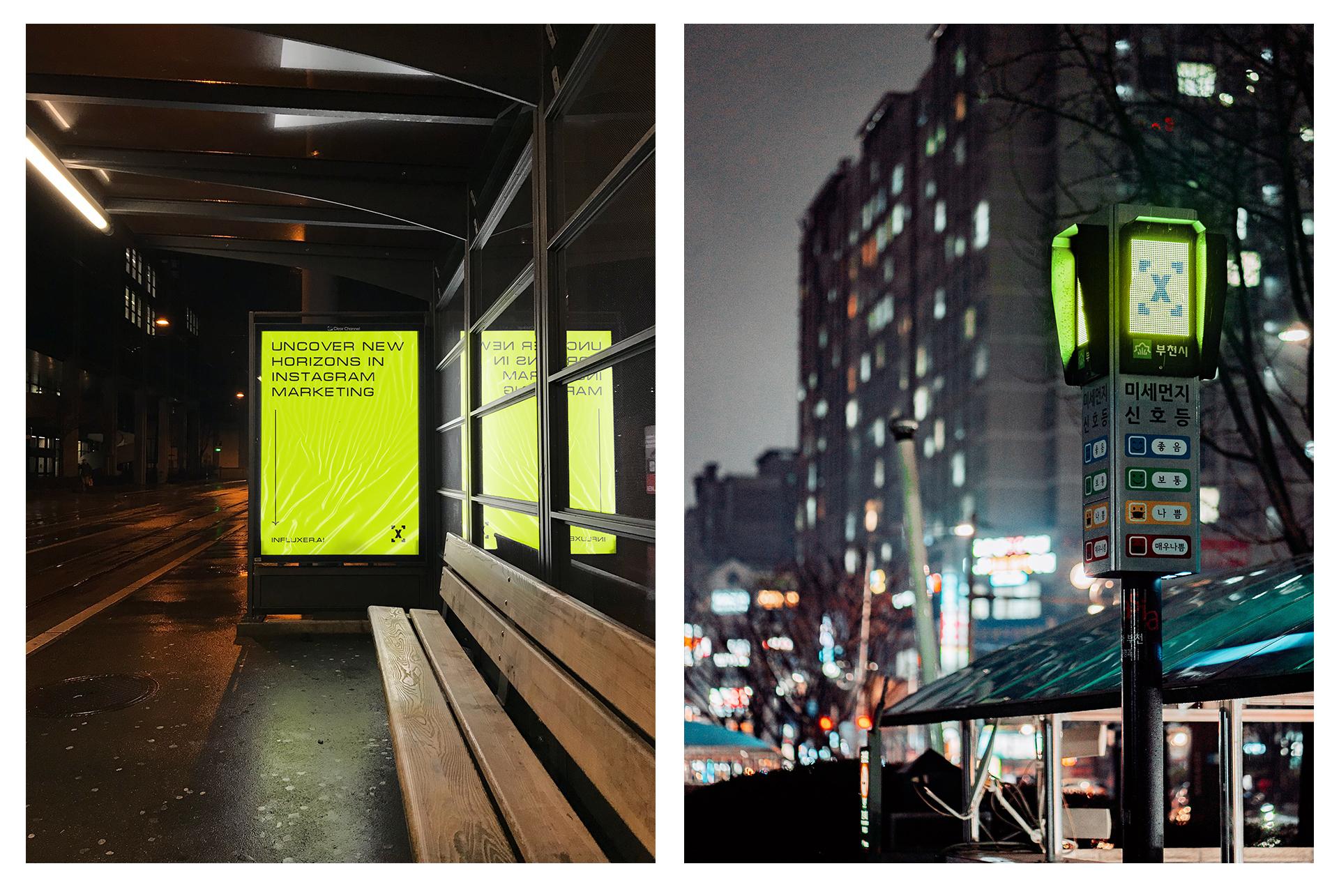 We decided to create a bright, neon identity, which will differentiate InfluX from its competitors. The main symbol is a letter "X" in square brackets. It symbolises a photo frame, shows connection to Instagram. And also it looks like a target.