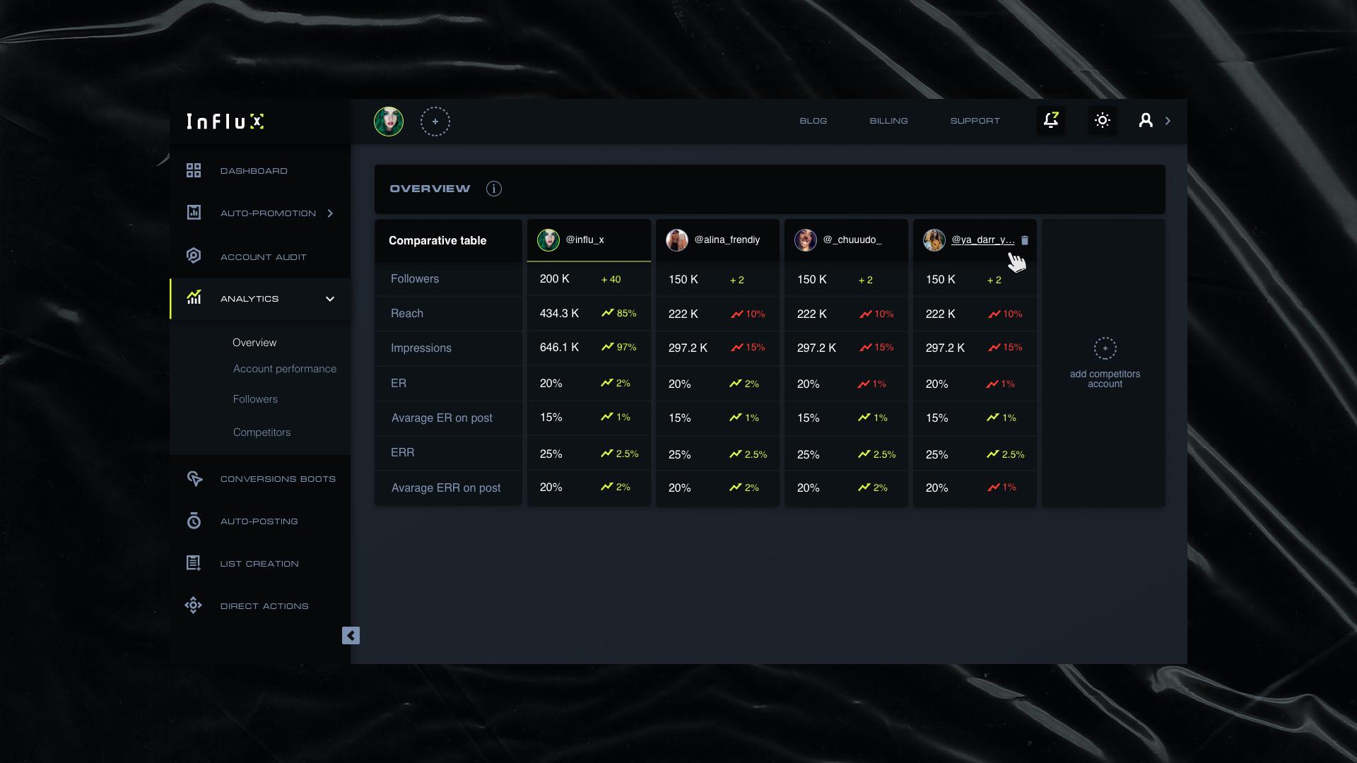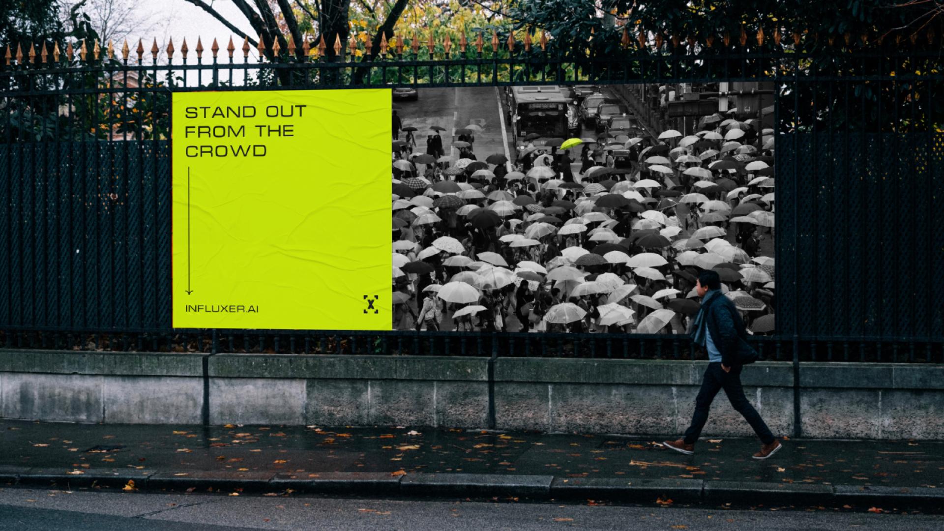 We developed a slogan - "Stand out from the crowd". It means, that you will raise your social media accounts to a new level, while using InfluX.
