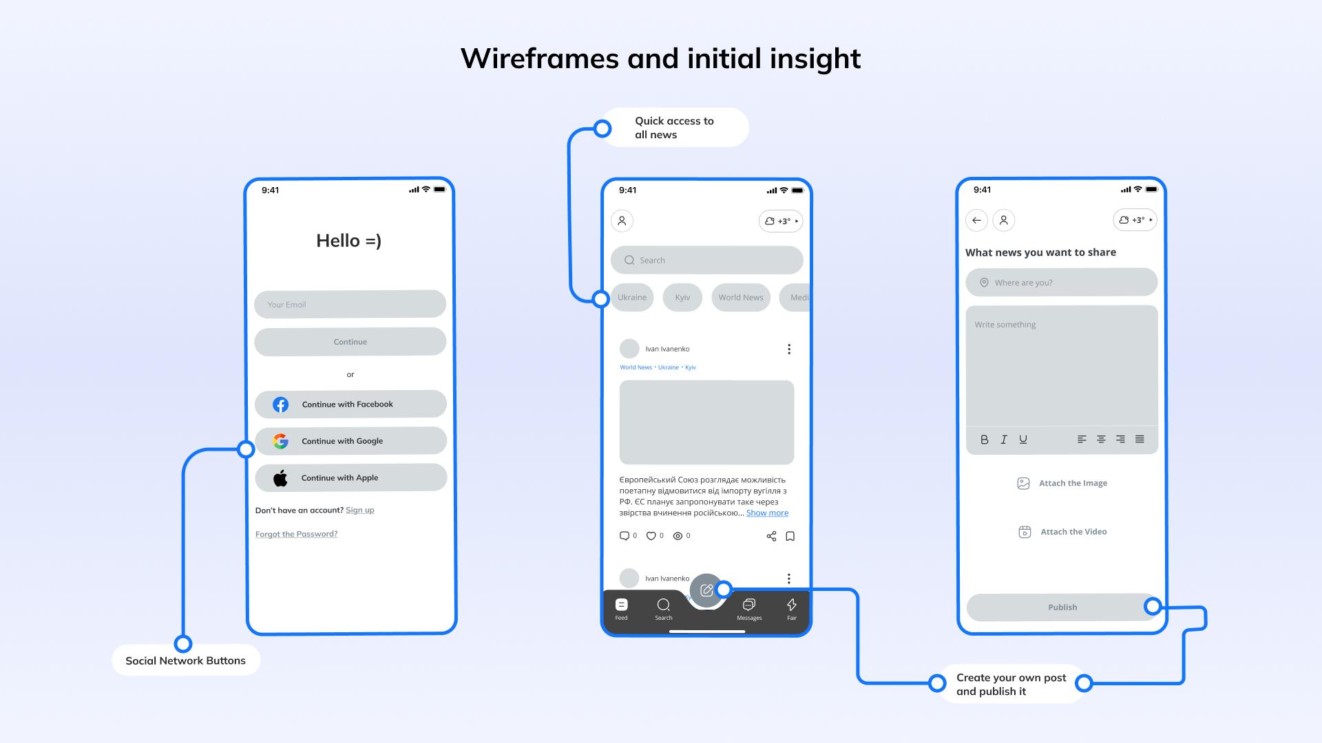 Our clients are an innovative platform that allows each user to learn about the latest news from the local city to the whole world. The platform also has a marketplace, weather widgets, messenger and other tools for interaction. they came to us with a request to develop a mobile application, since before that there was only a web platform.
